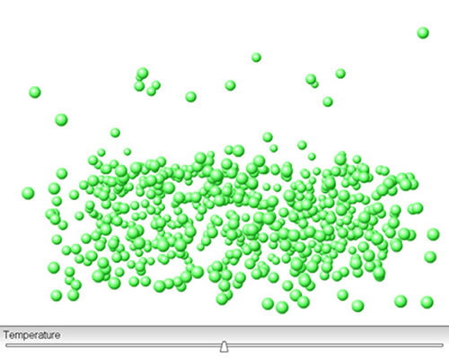 Click on the image above. Move the temperature slider bar to increase the temperature. Watch what happens. How does the dynamic equilibrium between particles in the liquid and gas phases change as temperature increases?